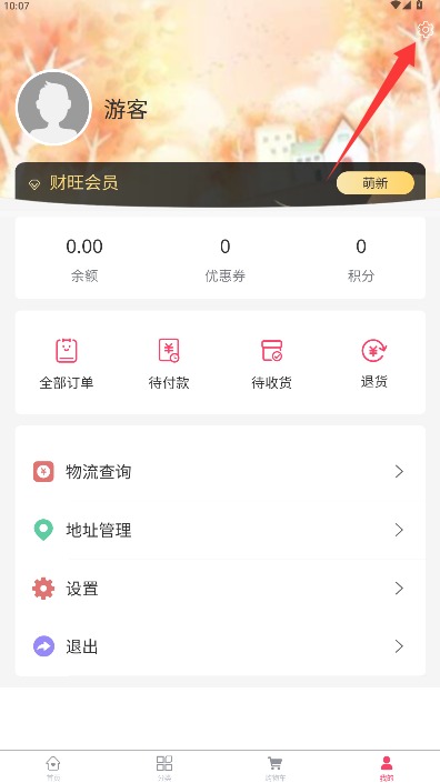 1、启动应用后点击右上角设置功能图标,进入账户管理与个人登录功能操作界面。