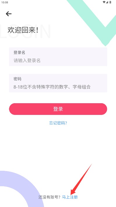 2、在登录页面选择底部马上注册选项按钮,立即跳转至新用户注册信息填写页面。
