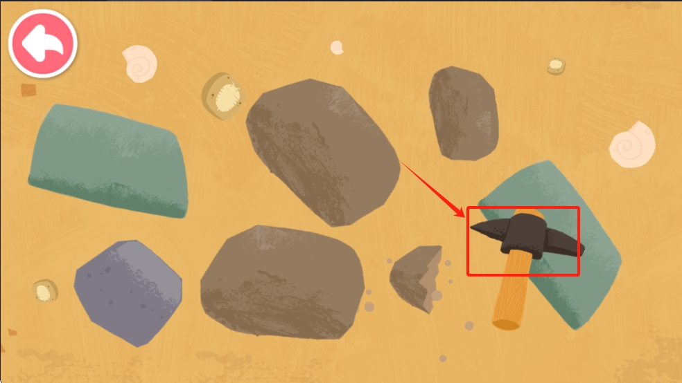 3、在挖掘场景中,使用镐头点击石头,寻找隐藏的古物。