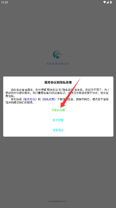 1、首次使用需阅读服务协议与隐私政策内容,确认后点击同意并接受按钮进入应用。