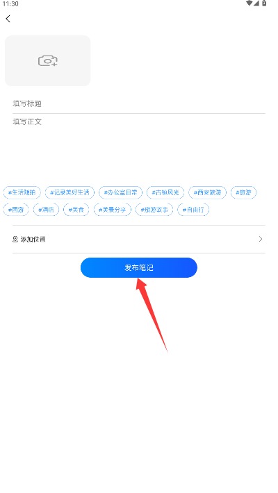 4、上传精选旅行照片、编写详细标题与正文内容,添加分类标签后即可发布笔记。