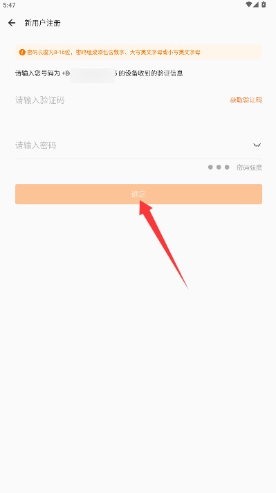 4、准确输入收到的短信验证码并设置登录密码,点击确定按钮即可完成注册。