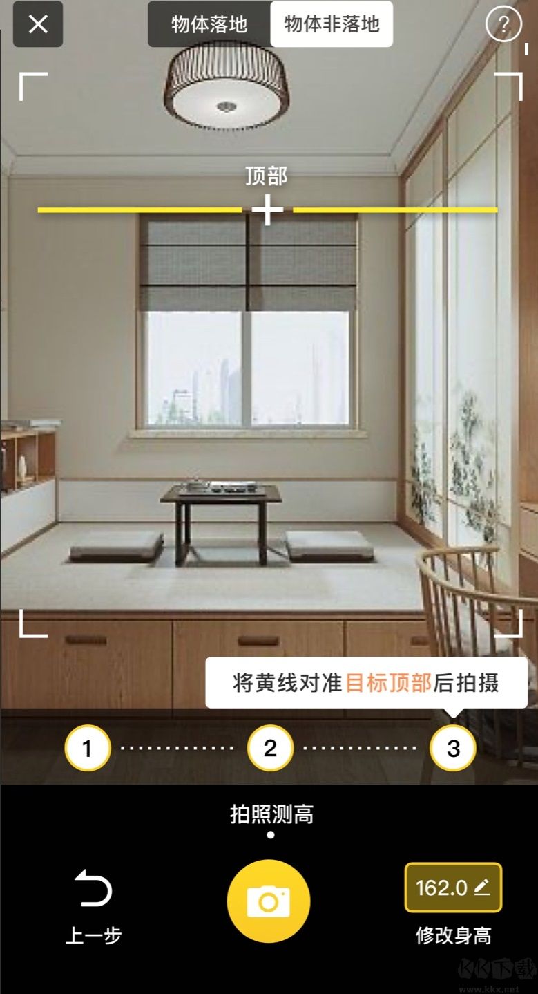 将摄像头对准房屋空间,软件即可自动计算并显示房间的面积;
