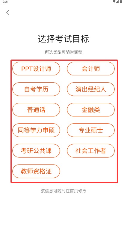 3、根据备考需求选择相应的考试目标与资格证类型,系统将匹配对应课程内容。