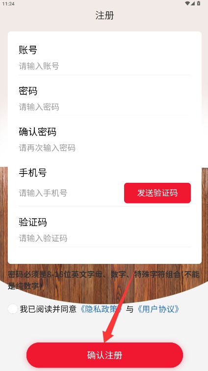 4、填写账号信息、登录密码、手机号码及短信验证码,确认无误后完成注册流程。