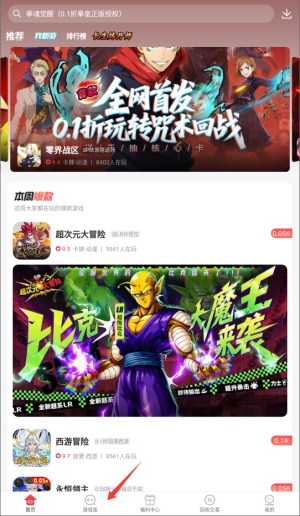 2、在主页面选择"游戏库"功能入口,浏览各类游戏资源分类列表。