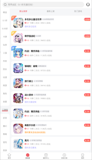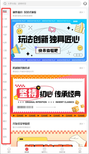 3、根据兴趣选择对应的游戏类型标签,查看该分类下的具体游戏项目。