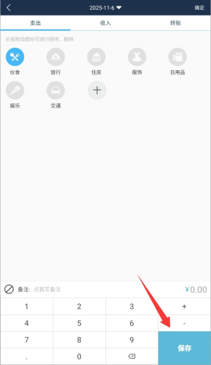 4、完成信息录入后点击右下角保存按钮,即可成功存储记账数据。