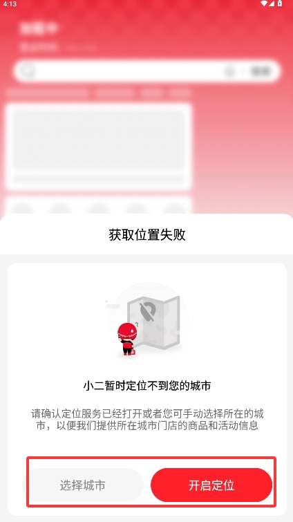2、根据提示选择所在城市或开启定位功能,获取本地商户与配送服务信息。