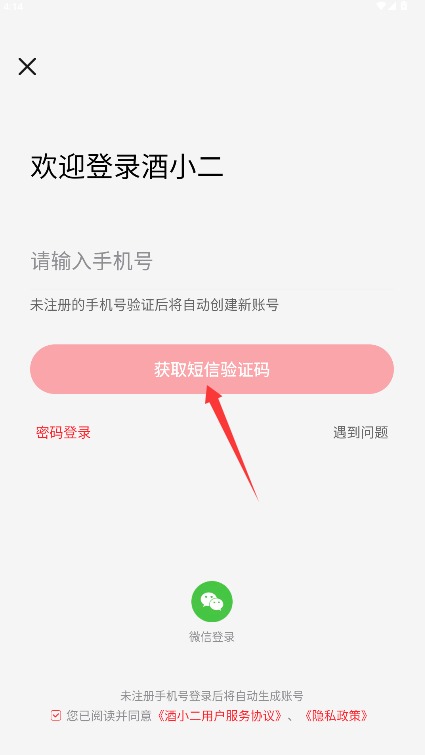 1、【注册与登录】打开酒小二App,点击注册按钮,使用手机号或第三方账号注册并登录。