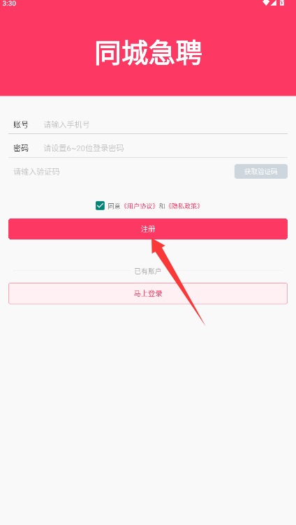 1、下载并安装同城急聘APP,首次使用时,需要注册账号,填写个人信息,包括姓名、联系方式及相关求职背景。