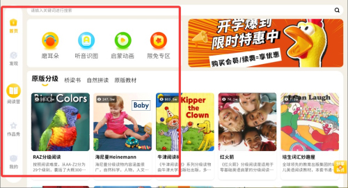 -8000+本欧美原版英文绘本,经典分级读物包括牛津树、海尼曼、红火箭、培生、大猫,还有国家地理、神奇校车、RAZ高频词、饼干狗等经典读物,根据小朋友的基础,挑选合适的级别,绘本支持朗读测评,支持听音识图,轻松刷分级~