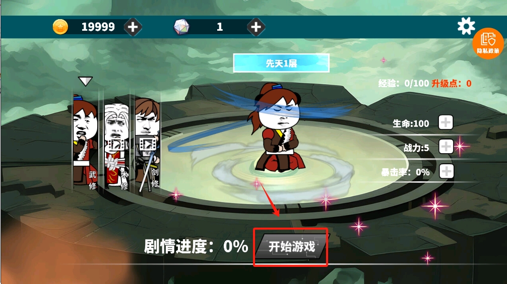 1、点击“开始游戏”按钮,开始你的冒险旅程。