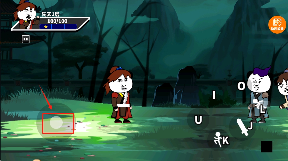 4、在使用虚拟摇杆和技能按钮来控制你的角色,击败敌人。
