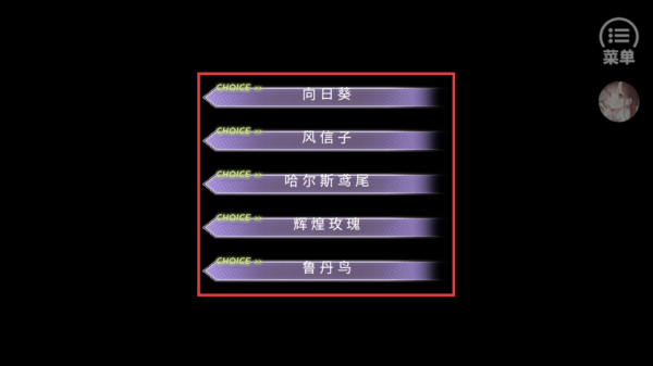 1、选择喜欢的花的种类,可以增加对应角色的好感度。
