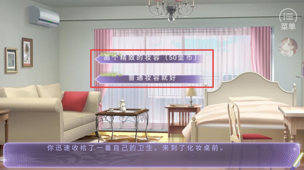 3、选择【画个精致的妆容】损失50金币,增加30气质,选择【普通妆容就好】气质加10。