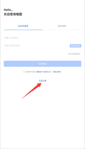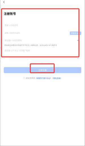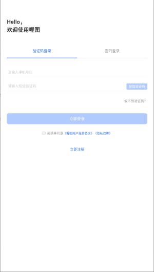 3、进入注册页面后选择立即注册功能,按照提示输入有效的手机号码进行验证。