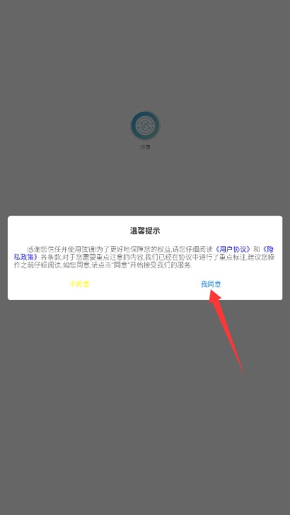 1、打开应用后仔细阅读用户协议和隐私政策,确认后点击我同意按钮进入系统。