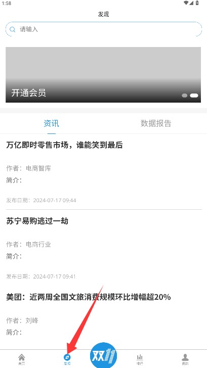 4、切换至发现界面可浏览电商行业资讯和数据报告,获取市场动态与分析。