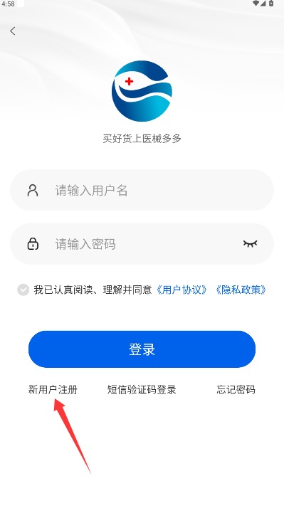2、在登录界面选择左下角新用户注册功能选项,系统将自动跳转至信息填写页面。