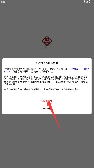 1、打开应用后仔细阅读用户协议和隐私政策,确认后点击同意并接受按钮进入。