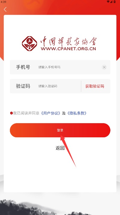 2、在登录界面输入个人手机号码并获取短信验证码,填写后完成账户登录验证。