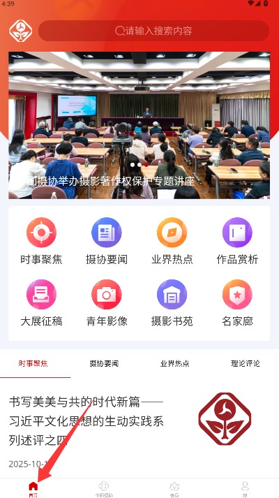 3、进入首页可浏览各类摄影协会新闻与行业热点动态,获取最新资讯信息。