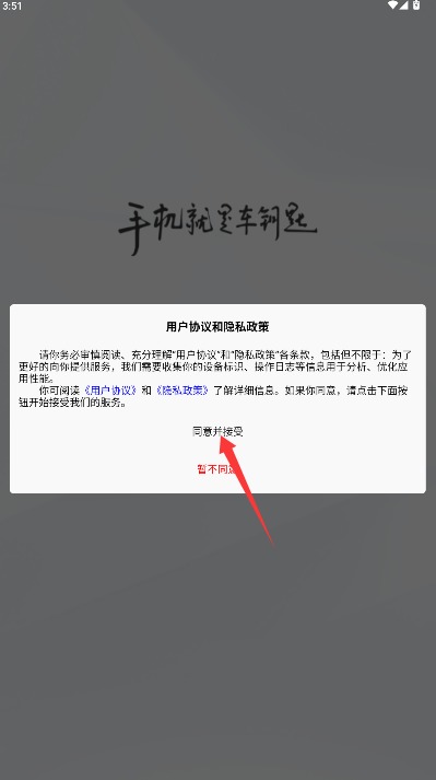1、打开应用后仔细阅读用户协议和隐私政策,确认后点击同意并接受按钮进入。