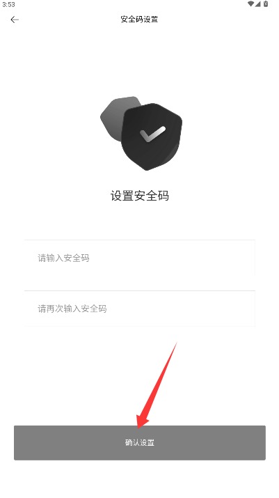 4、根据提示设置安全码并再次确认输入,点击确认后即可完成全部登录流程。