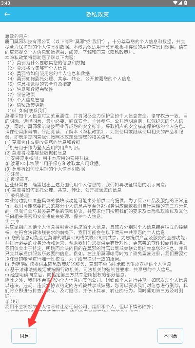 1、打开初级会计师考点应用后阅读隐私政策,确认后点击同意按钮进入系统。