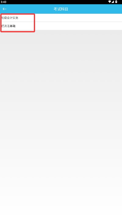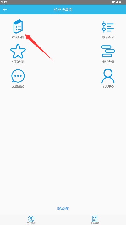 2、进入应用主界面后选择考试科目功能模块,进入具体科目选择与学习内容页面。