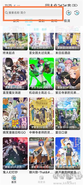 1、打开风铃动漫App搜索框可以搜索你想看的动漫