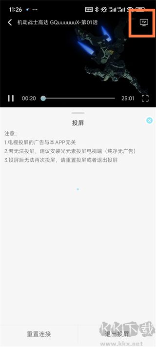 3、当你想在电视追番可以点击右上角的TV进行投屏