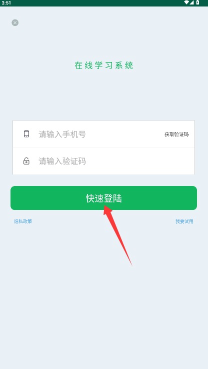 2、在登录界面输入个人手机号码并获取短信验证码,填写后完成账户登录验证。