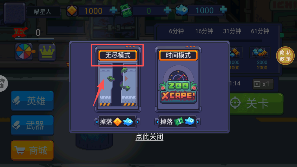 3、选择“无尽模式”,根据喜好开始不同挑战。
