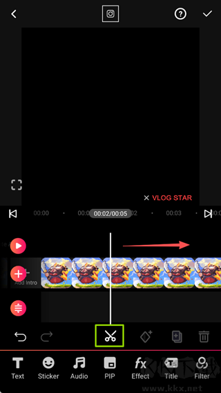 3、左右滑动素材并点选剪切符号,即可去除冗余片段。
