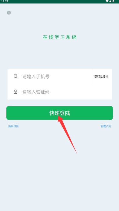 2、在登录界面输入个人手机号码并获取短信验证码,填写后完成账户登录验证。