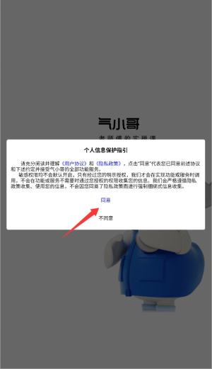 1、首次启动应用时,系统会显示用户协议和隐私政策,阅读后点击同意按钮进入主界面。
