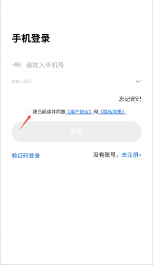 3、在登录页面勾选同意用户协议与隐私政策条款,进入身份验证步骤。