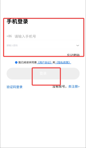 4、输入已注册的手机号码与对应密码信息,点击登录按钮完成账户验证。
