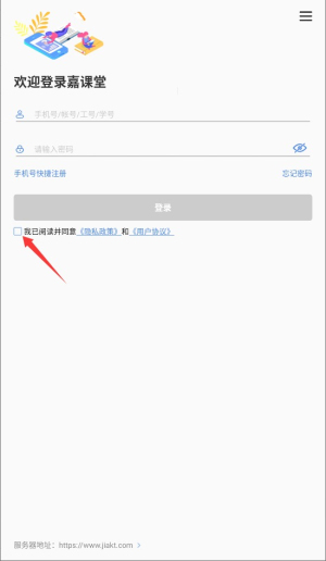 3、在登录页面勾选同意用户协议与隐私政策条款,进入身份验证步骤。