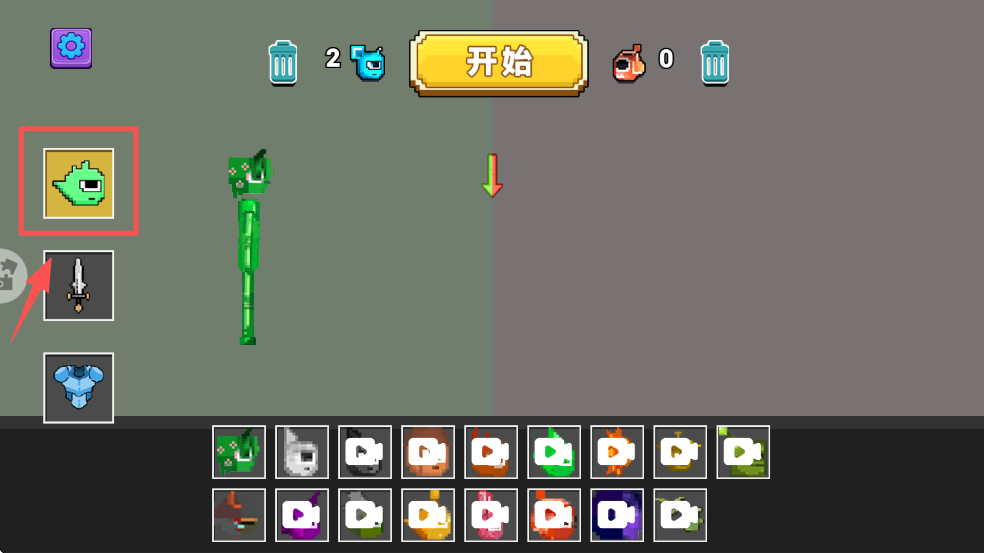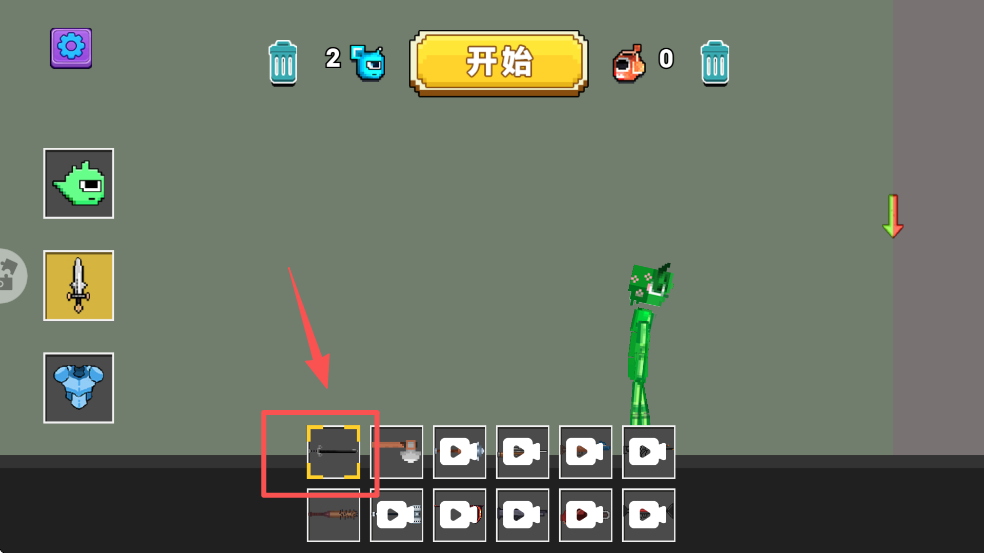 2、在角色选择界面,点击选择您喜欢的角色,例如绿色机器人,开始游戏。