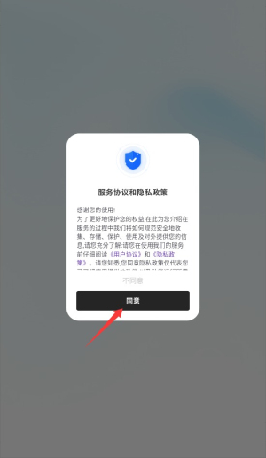1、首次启动应用时,系统会显示用户协议和隐私政策,阅读后点击同意按钮进入主界面。