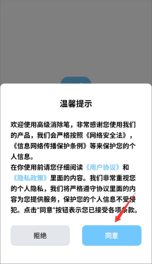 1、首次启动应用时,系统会显示用户协议和隐私政策,阅读后点击同意按钮进入主界面。