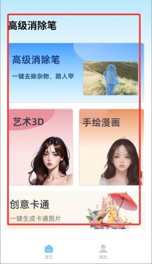 2、进入程序首页后,在功能区域选择高级消除笔工具,进入图片编辑工作区。