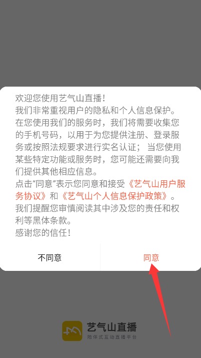 1、打开应用后仔细阅读服务协议和隐私政策,确认后点击同意按钮进入应用。