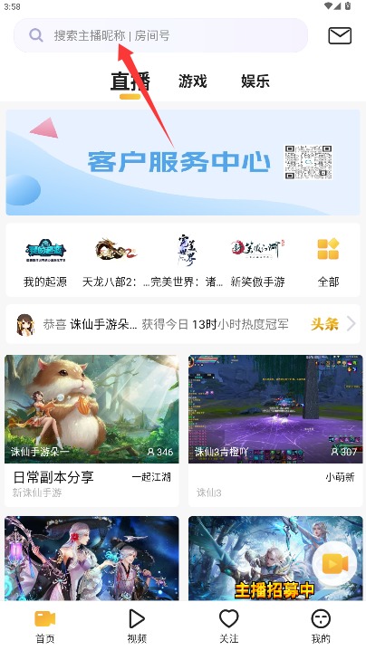 3、进入首页可通过搜索主播昵称或房间号,快速定位并进入目标直播房间。