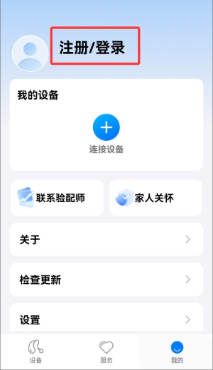 支持耳内式助听器使用的APP,通过蓝牙连接助听器,可实现调节音量、频段增益调节、智能降噪等相关设置。