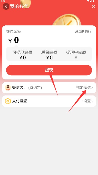 4、完成微信账号绑定授权操作后,点击提现功能按钮即可发起资金提取申请流程。