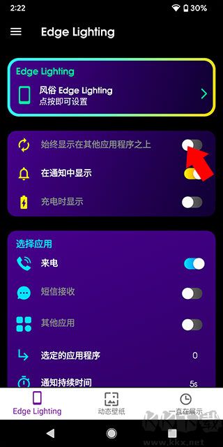 Edge lighting是一款能够在智能手机上运行的类似于边框跑马灯的RGB灯效应用,为手机屏幕增添一道动态光效,当新消息到达,屏幕边缘会亮起柔和色彩,伴随流动光影,可以自由选择不同色调,搭配各类通知场景,短暂闪烁的微光既能及时提醒,又不会干扰当前操作,这项功能将实用性与视觉美感巧妙融合,让寻常的信息提示变成一场微型灯光秀,每个人都能找到心仪的显示风格,使沟通过程更富趣味。